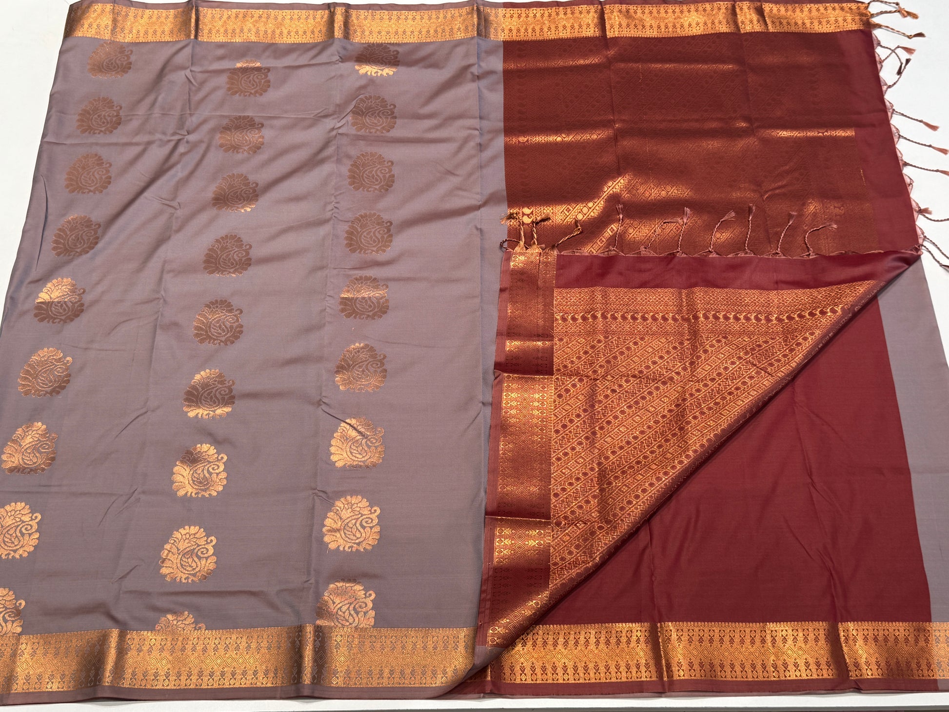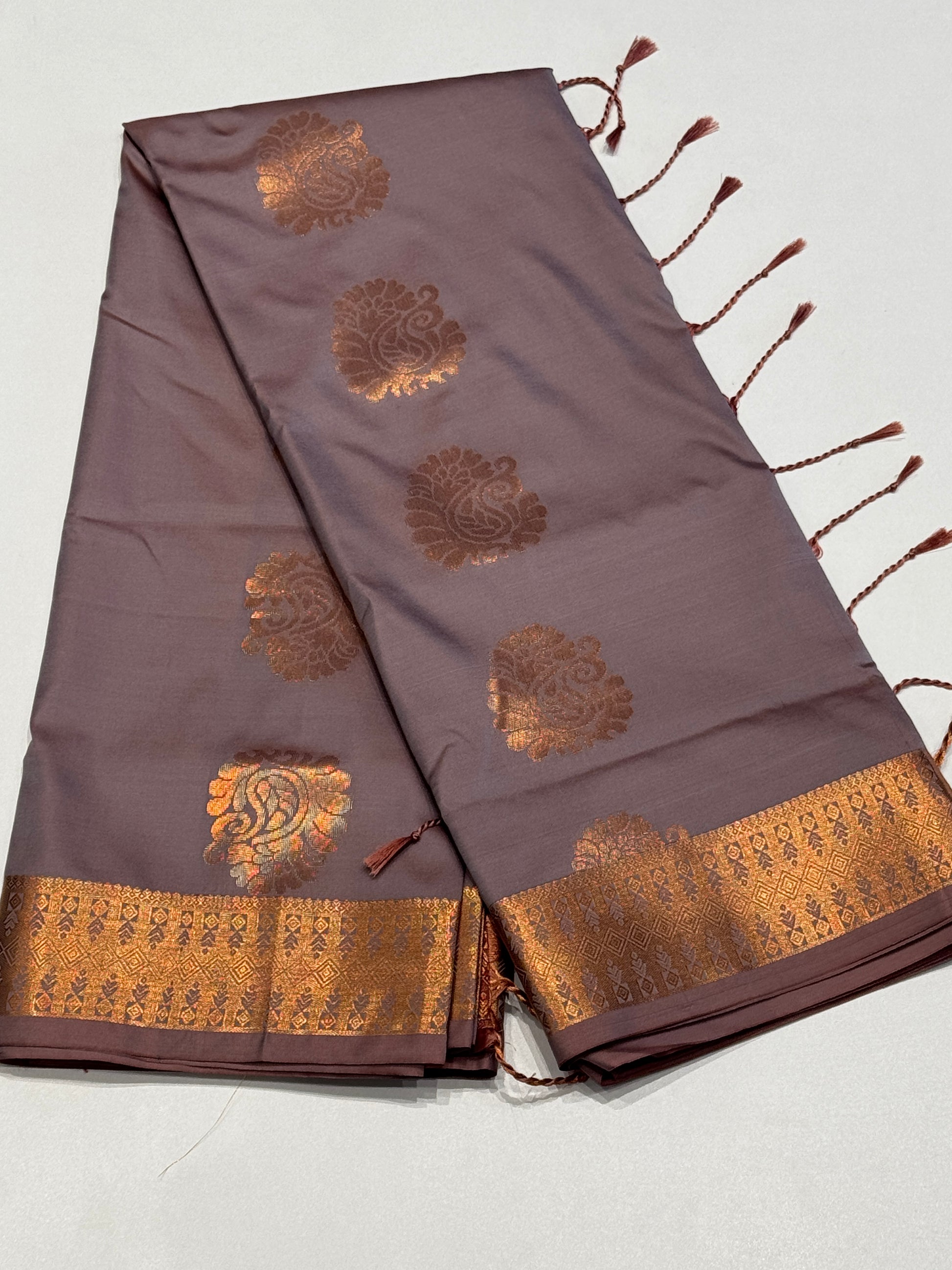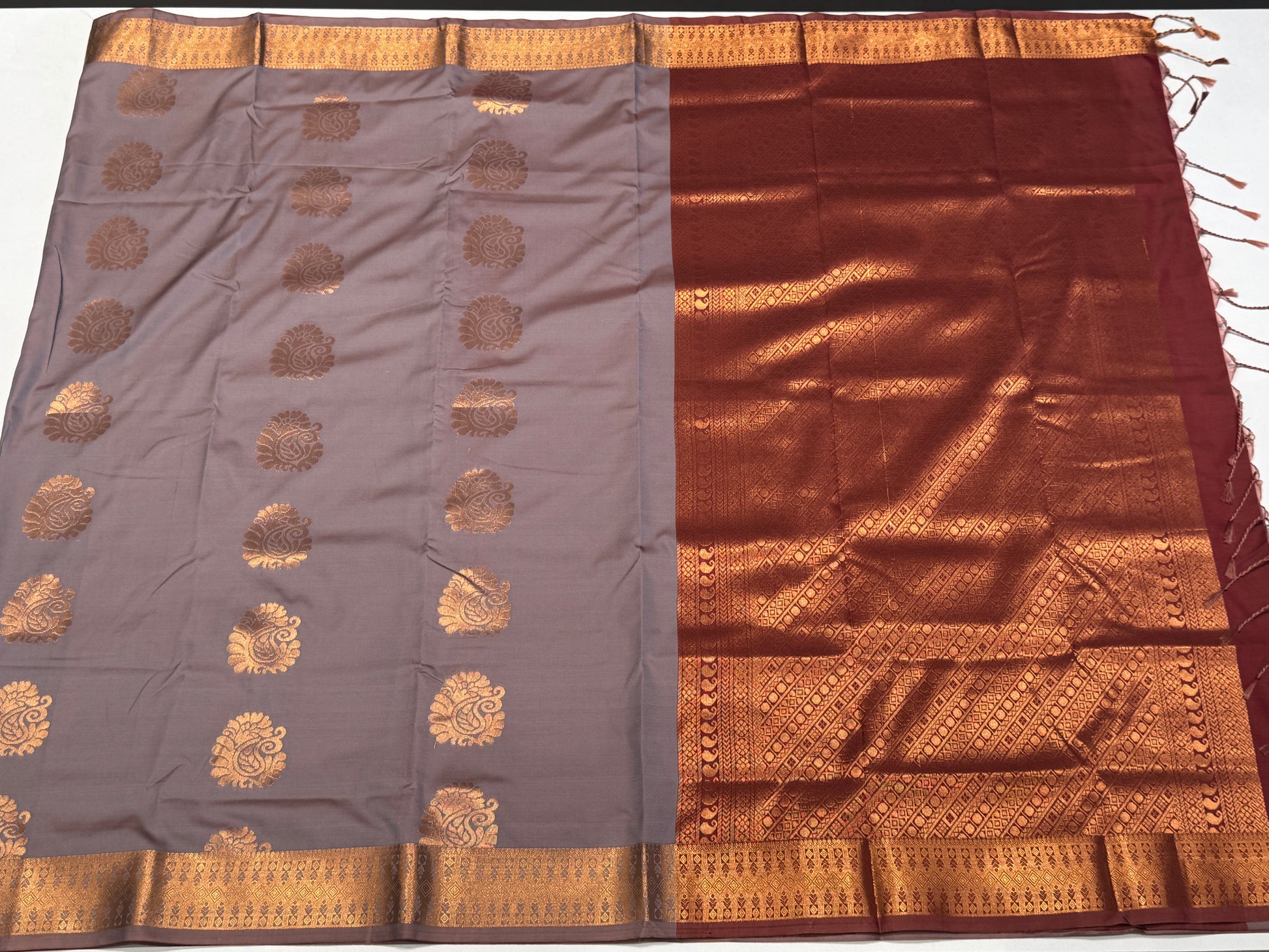 💛Here’s the Beautiful Semi Silk Saree with beautiful motifs and Contrast Pallu and blouse.💛